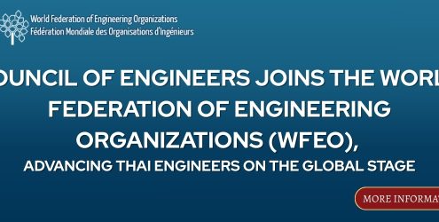🎉 The Council of Engineers, Thailand, has been formally admitted as a member of the World Federation of Engineering Organizations (WFEO). This milestone represents an important step in strengthening Thailand’s engagement in the global engineering community and enhancing the application of engineering knowledge to address challenges at both national and international levels. WFEO is committed […]